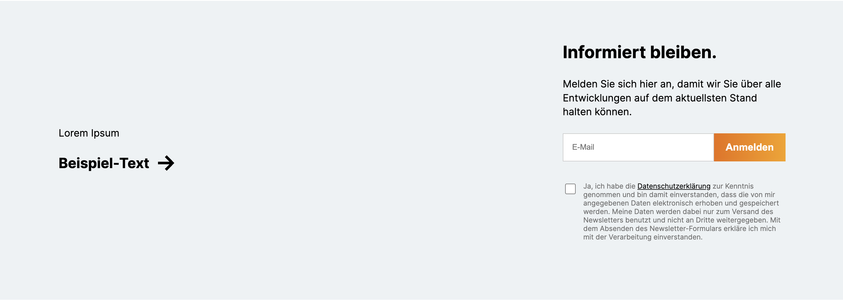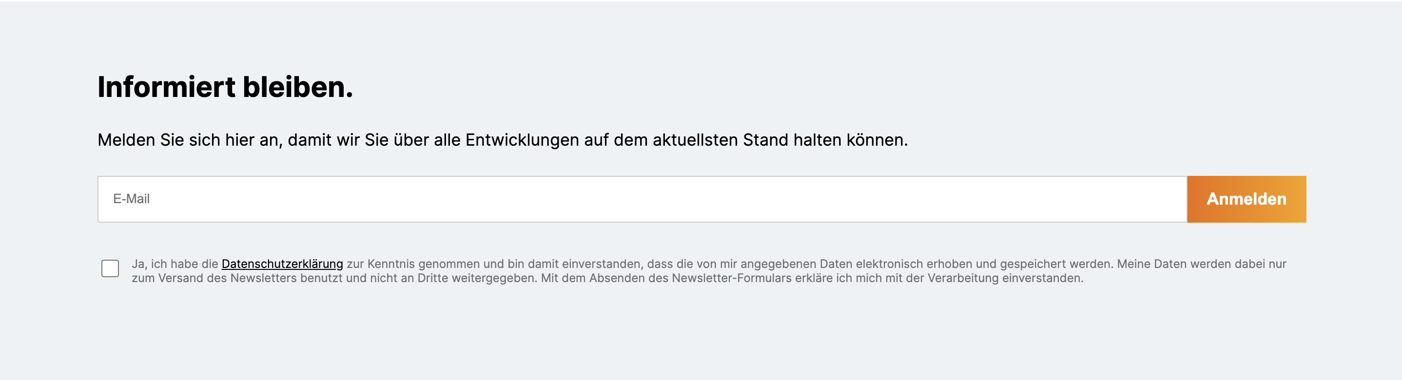 Falls nur das Brevo-Modul ausgewählt wurde, wird der Newsletter alleinstehend angezeigt.