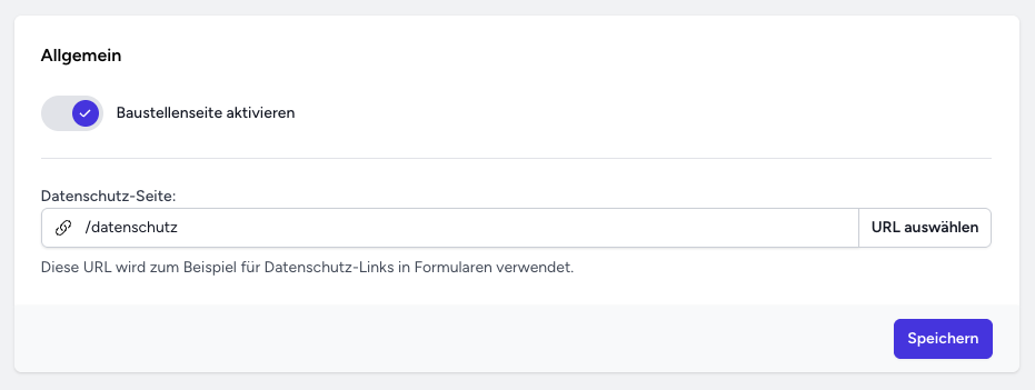 Standardmäßig wird ein Link ausgegeben, welcher auf ihre Domain mit der URL "/datenschutz" weiterleitet. Wir empfehlen Ihnen diese Seite aus rechtlichen Gründen mit hoher Priorität und gewissenhaft zu pflegen.
